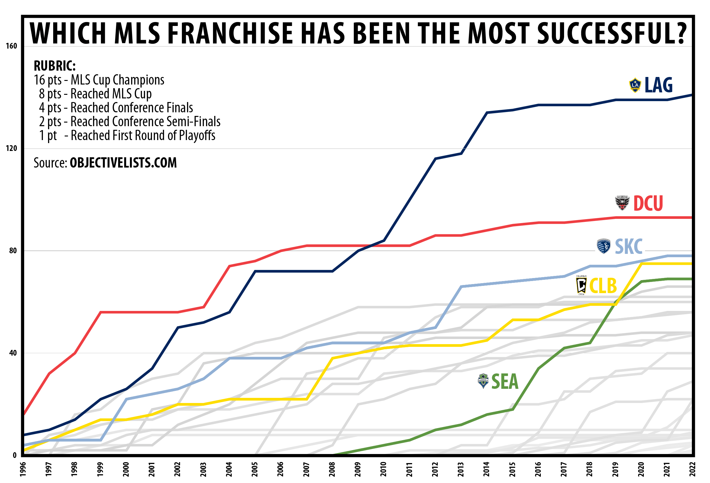 1. LA Galaxy, 2. DC United, 3. Sporting KC, 4. Columbus Crew, 5. Seattle Sounders